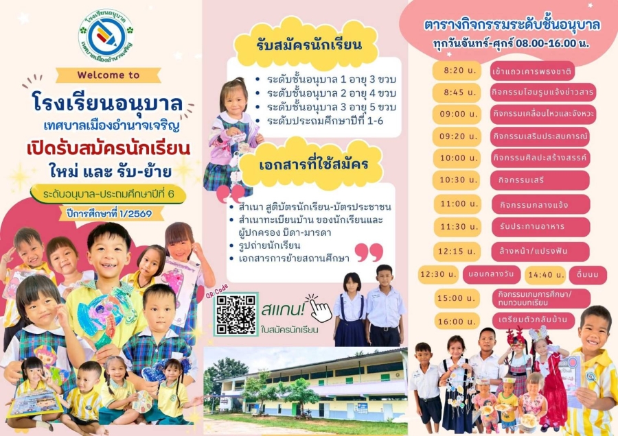 ่โรงเรียนอนุบาลเทศบาลเมืองอำนาจเจริญ รับสมัครนักเรียน รับย้ายนักเรียน ปีการศึกษา 2569