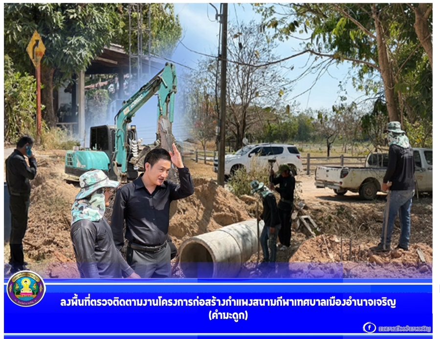 ลงพื้นที่ตรวจติดตามงานโครงการก่อสร้างกำแพงสนามกีฬาเทศบาลเมืองอำนาจเจริญ(คำมะดูก)