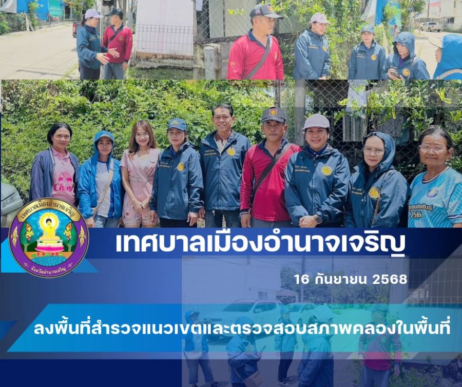 นายถวัลย์ นิยมพานิชพัฒนา นายกเทศมนตรีเมืองอำนาจเจริญ ได้มอบหมายให้ นางจีระนัน ศรีสุวรรณ รองนายกเทศมนตรีเมืองอำนาจเจริญ พร้อมด้วยสมาชิกสภาเทศบาล ลงพื้นที่สำรวจแนวเขตและตรวจสอบสภาพคลองในพื้นที่ชุมชนเอื้ออาทร ตำบลบุ่ง อำเภอเมืองอำนาจเจริญ จังหวัดอำนาจเจริญ