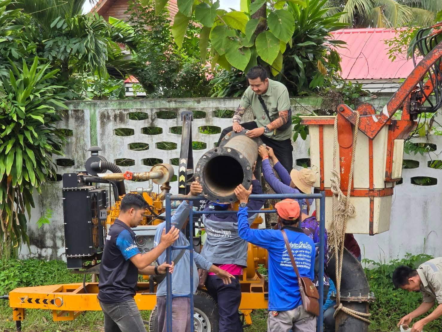 ลงพื้นที่ ได้มอบน้ำดื่มแก่เจ้าหน้าที่ผู้ปฏิบัติงานขุดลอกคลองน้ำ ณ ชุมชนเอื้ออาทร และชุมชนยางพัฒนา ตำบลบุ่ง อำเภอเมืองอำนาจเจริญ จังหวัดอำนาจเจริญ