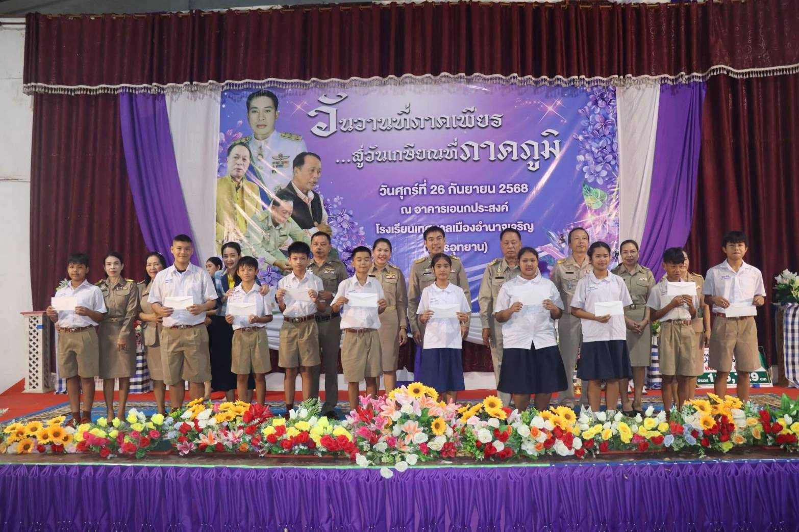 นายถวัลย์ นิยมพานิชพัฒนา นายกเทศมนตรีเมืองอำนาจเจริญ พร้อมด้วยนางจีระนัน ศรีสุวรรณ รองนายกเทศมนตรีเมืองอำนาจเจริญ เลขานุการ สมาชิกสภาเทศบาล และผู้บริหารสถานศึกษา ร่วมมอบทุนการศึกษาแก่นักเรียน ณ โรงเรียนเทศบาลเมืองอำนาจเจริญ(พุทธอุทยาน) เพื่อเป็นขวัญกำลังใจและสนับสนุนการศึกษาแก่เยาวชน สามารถพัฒนาตนเองและก้าวสู่การเป็นกำลังสำคัญ