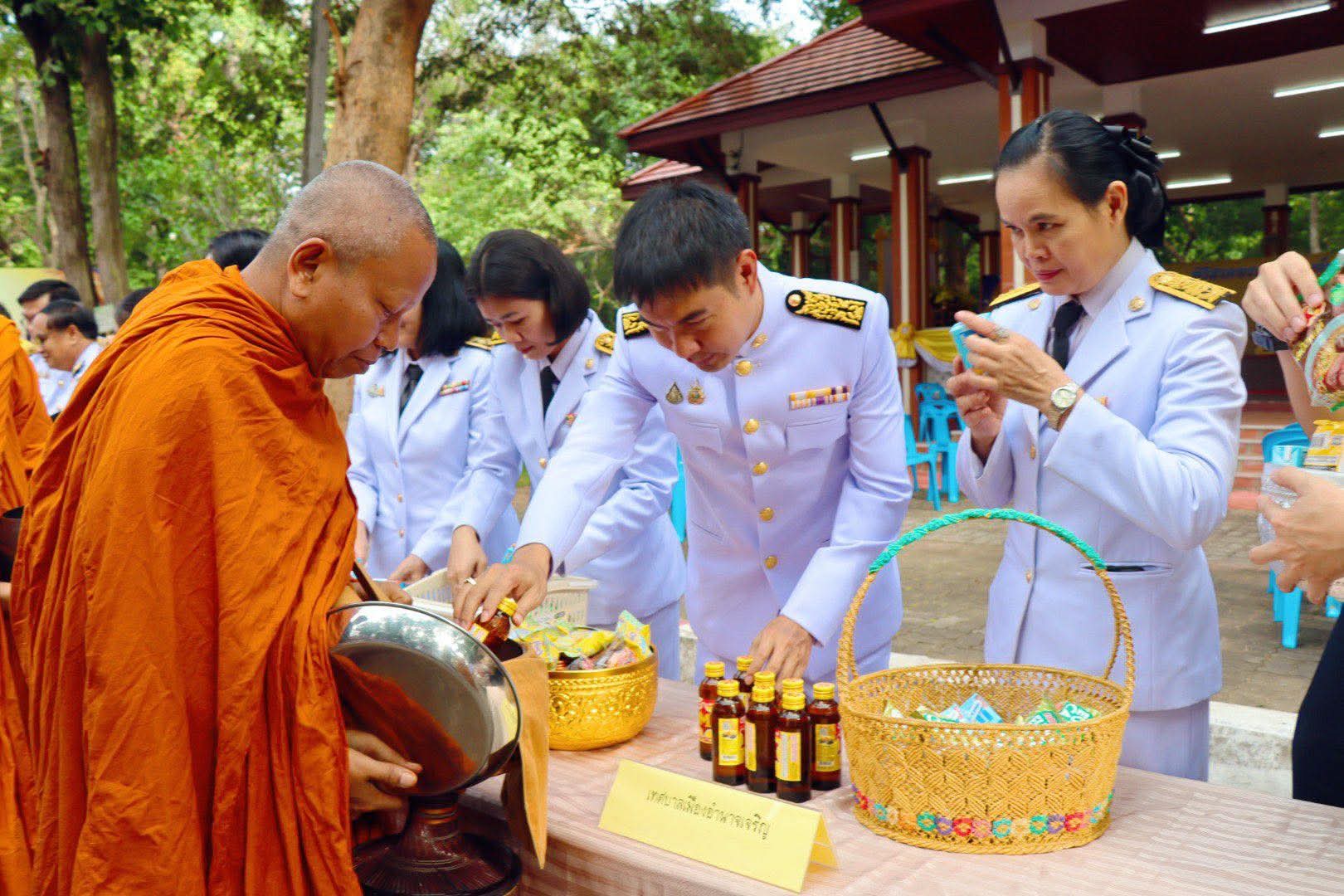 พิธีสวดพระพุทธมนต์ และพิธีทำบุญตักบาตรถวายพระราชกุศลเนื่องในวันนวมิทรมหาราช
