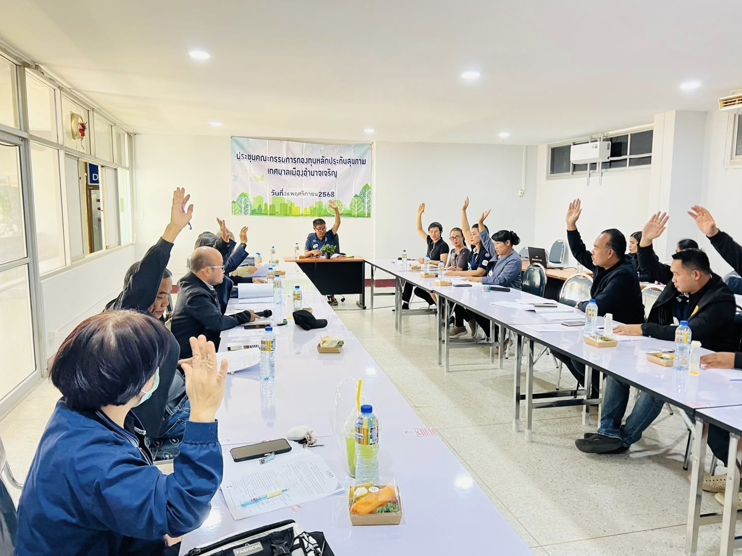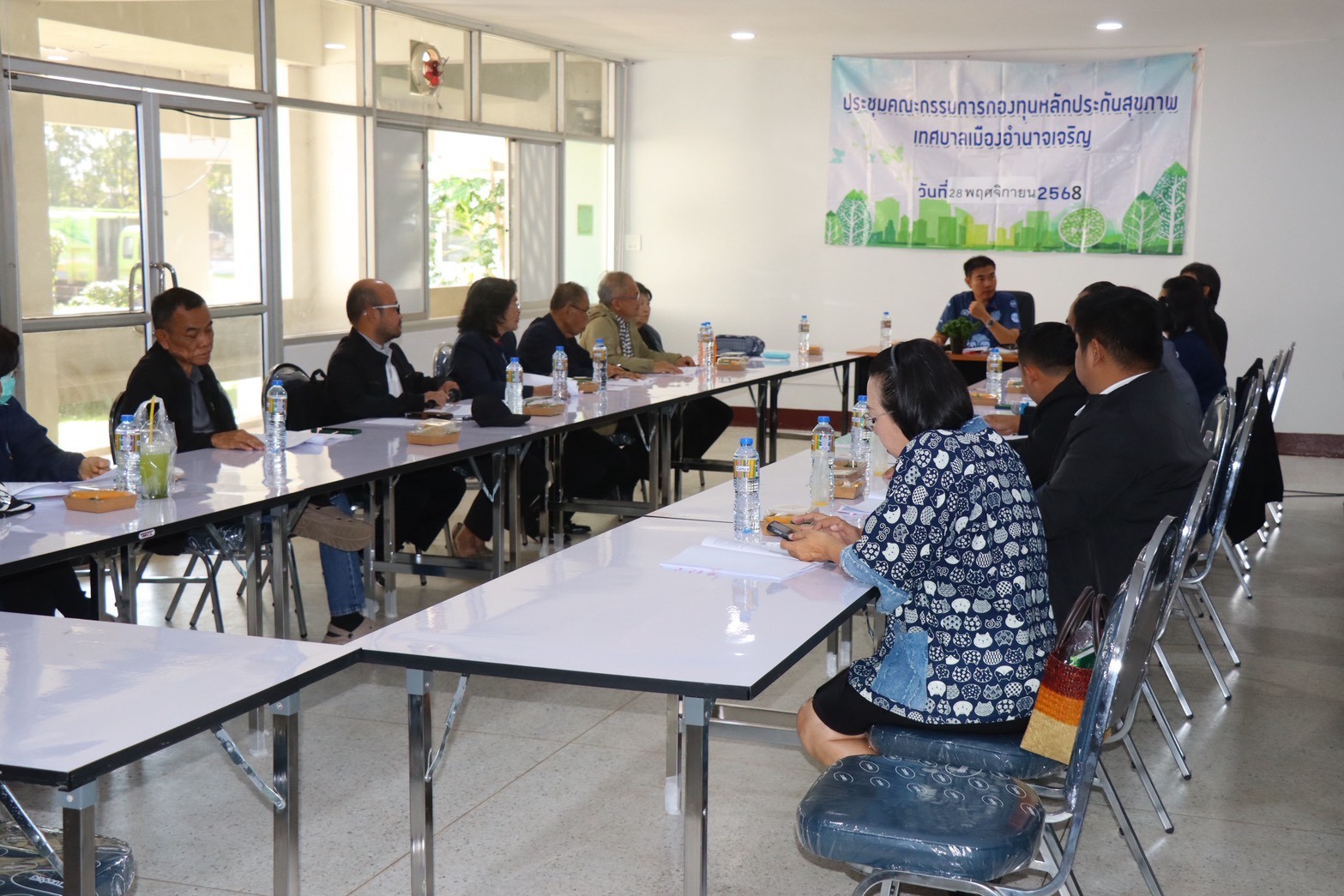 ศูนย์บริการสาธารณะสุข แห่งที่ 3 เทศบาลเมืองอำนาจเจริญ ได้จัดประชุมคณะกรรมการและอนุกรรมการกองทุนหลักประกันสุขภาพ ครั้งที่ 1/2568 เพื่ออนุมัติแผนการเงินประจำปีงบประมาณ 2569 ในการนี้ นายถวัลย์ นิยมพานิชพัฒนา นายกมนตรีเมืองอำนาจเจริญ เป็นประธานการประชุม พร้อมด้วยรองปลัดเทศบาล หัวหน้าส่วนราชการ ผู้นำชุมชนและเจ้าหน้าที่ที่เกี่ยวข้องร่วมประชุมอย่างพร้อมเพียง ห้องประชุมชั้น 1 สำนักงานเทศบาลเมืองอำนาจเจริญ