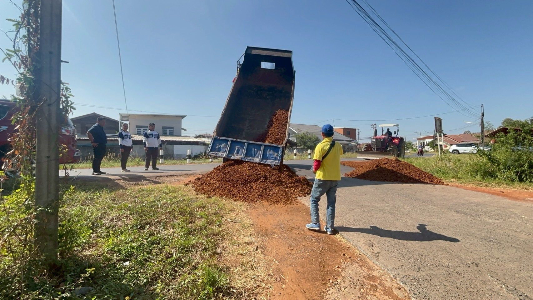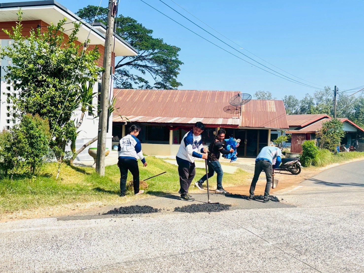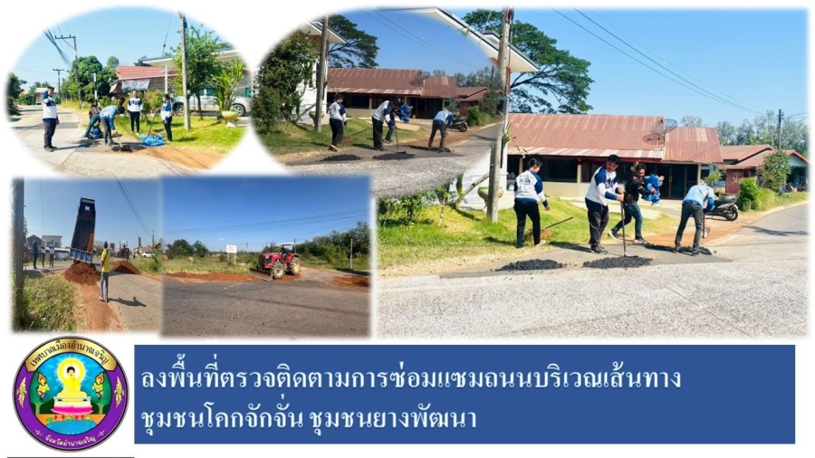 ลงพื้นที่ตรวจติดตามการดำเนินงานซ่อมแซมถนนบริเวณชุมชนโคกจักจั่น ชุมชนยางพัฒนา