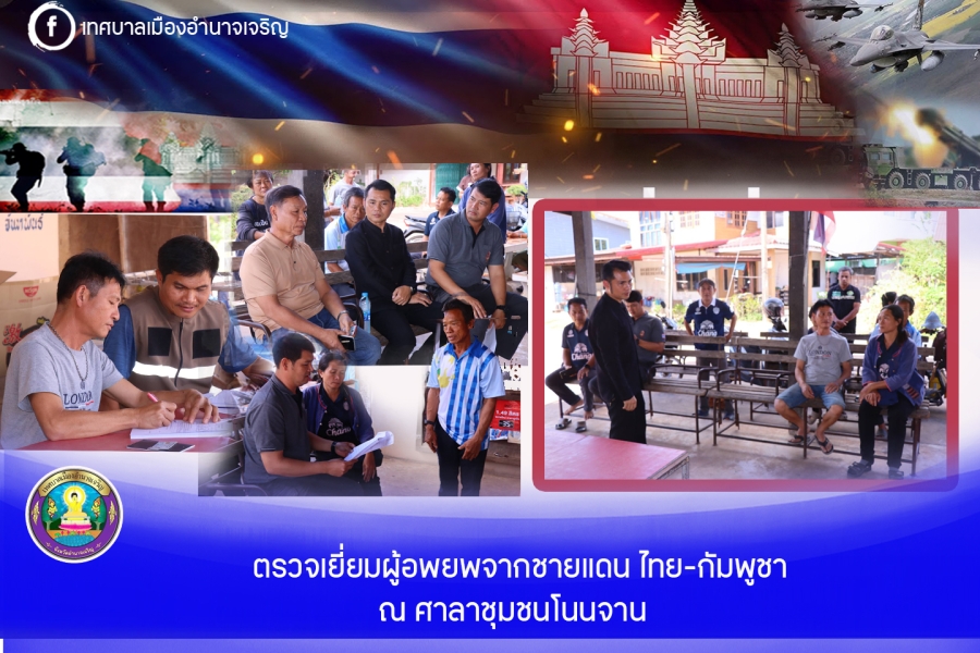 นายถวัลย์ นิยมพานิชพัฒนา นายกเทศมนตรีเมืองอำนาจเจริญ มอบหมายให้ นายณฐกร วรรณะวัลย์ รองนายกเทศมนตรีเมืองอำนาจเจริญ พร้อมด้วย สมาชิกสภาเทศบาลเมืองอำนาจเจริญ หัวหน้าส่วนราชการ และเจ้าหน้าที่ผู้เกี่ยวข้อง ลงพื้นที่ตรวจเยี่ยมผู้อพยพจากภัยสงคราม (ไทย – กัมพูชา) เพื่อให้กำลังใจสอบถามถึงชีวิตความเป็นอยู่และรวบรวมข้อมูลของผู้อพยพนำรายละเอียดที่ได้รับเพื่อประกอบการพิจารณาให้ความช่วยเหลือเบื้องต้นตามอำนาจหน้าที่ ต่อไป ณ ศาลาชุมชนโนนจาน อำเภอเมืองอำนาจเจริญ จังหวัดอำนาจเจริญ