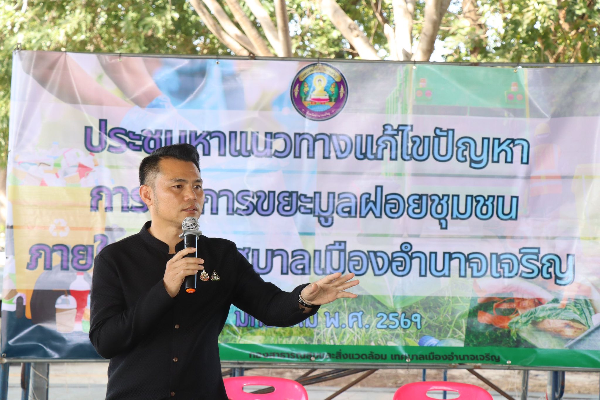นายถวัลย์ นิยมพานิชพัฒนา นายกเทศมนตรีเมืองอำนาจเจริญ มอบหมายให้ นายณฐกร วรรณะวัลย์ รองนายกเทศมนตรีเมืองอำนาจเจริญ เป็นประธานในการประชุมเพื่อหาแนวทางแก้ไขปัญหาการจัดการขยะมูลฝอยชุมชนในเขตเทศบาลเมืองอำนาจเจริญ ในที่ประชุมประกอบด้วย ประธานชุมชน ตัวแทนคณะกรรมการชุมชน หัวหน้าส่วนราชการ เจ้าหน้าที่กองสาธารณสุขและสิ่งแวดล้อม มีวัตถุประสงค์เพื่อหารือแนวทางแก้ไขปัญหาการจัดการขยะมูลฝอยชุมชนซึ่งส่งผลกระทบต่อปัญหาสุขภาพ เศรษฐกิจ และสิ่งแวดล้อมทั้งทางตรงและทางอ้อม ณ อาคารโดมอเนกประสงค์ สำนักงานเทศบาลเมืองอำนาจเจริญ