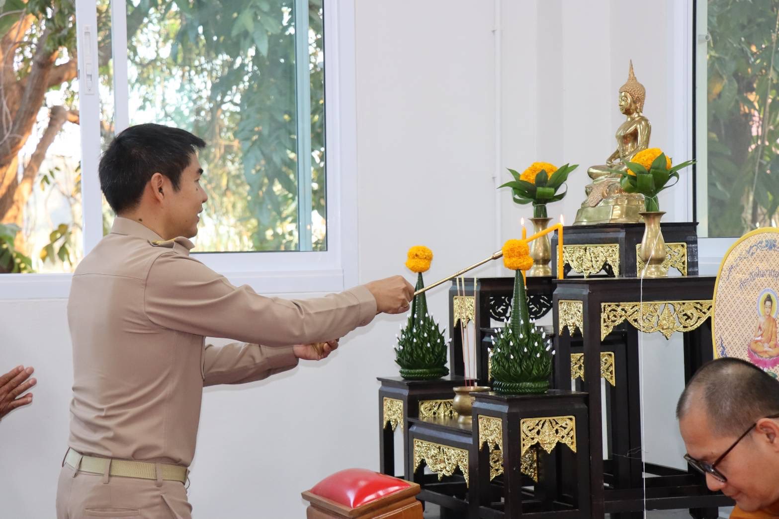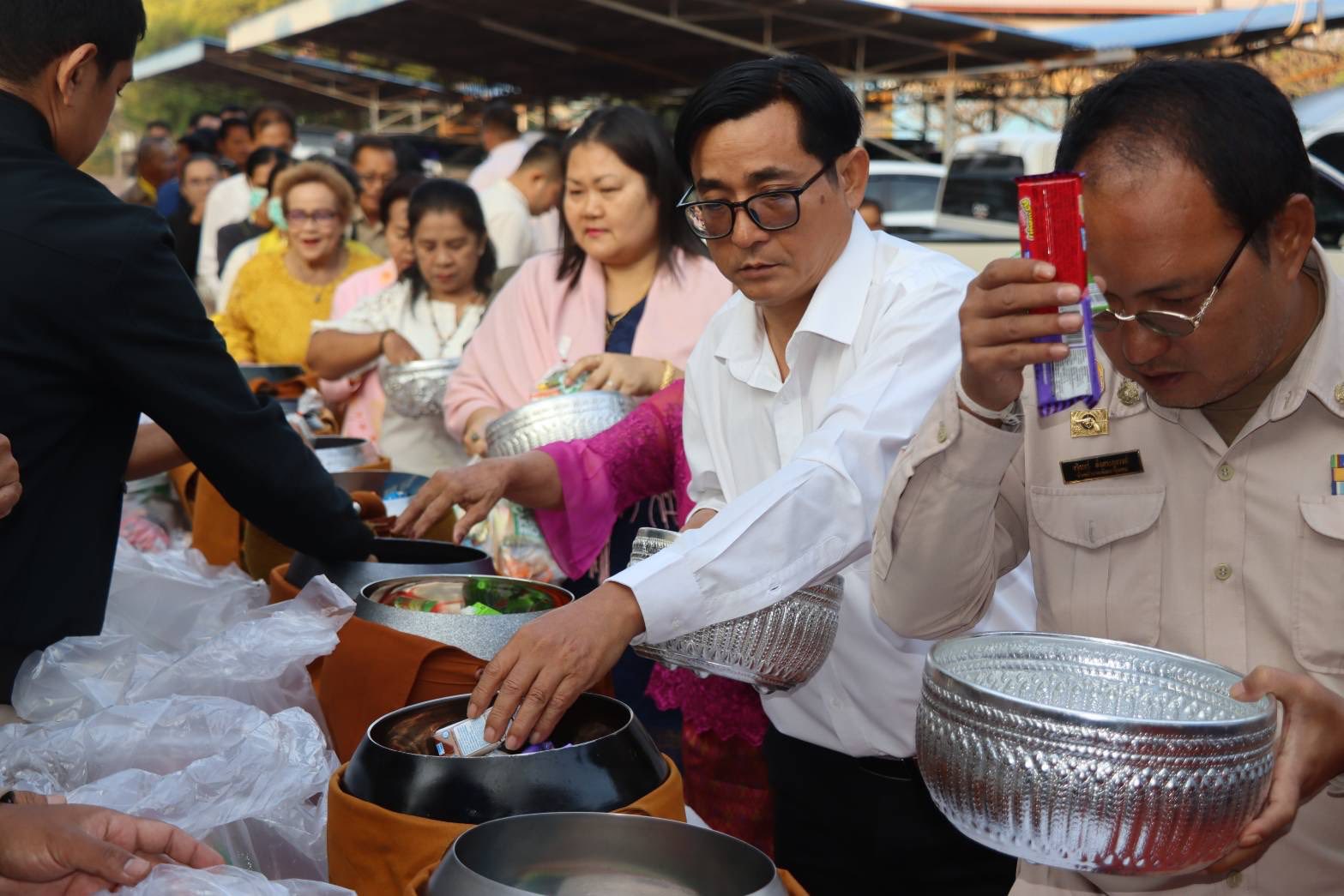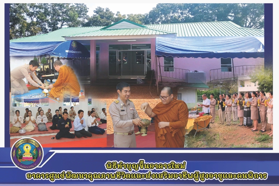 พิธีทำบุญตักบาตรอาคารศูนย์พัฒนาคุณภาพชีวิตและส่งเสริมอาชีพผู้สูงอายุและคนพิการ