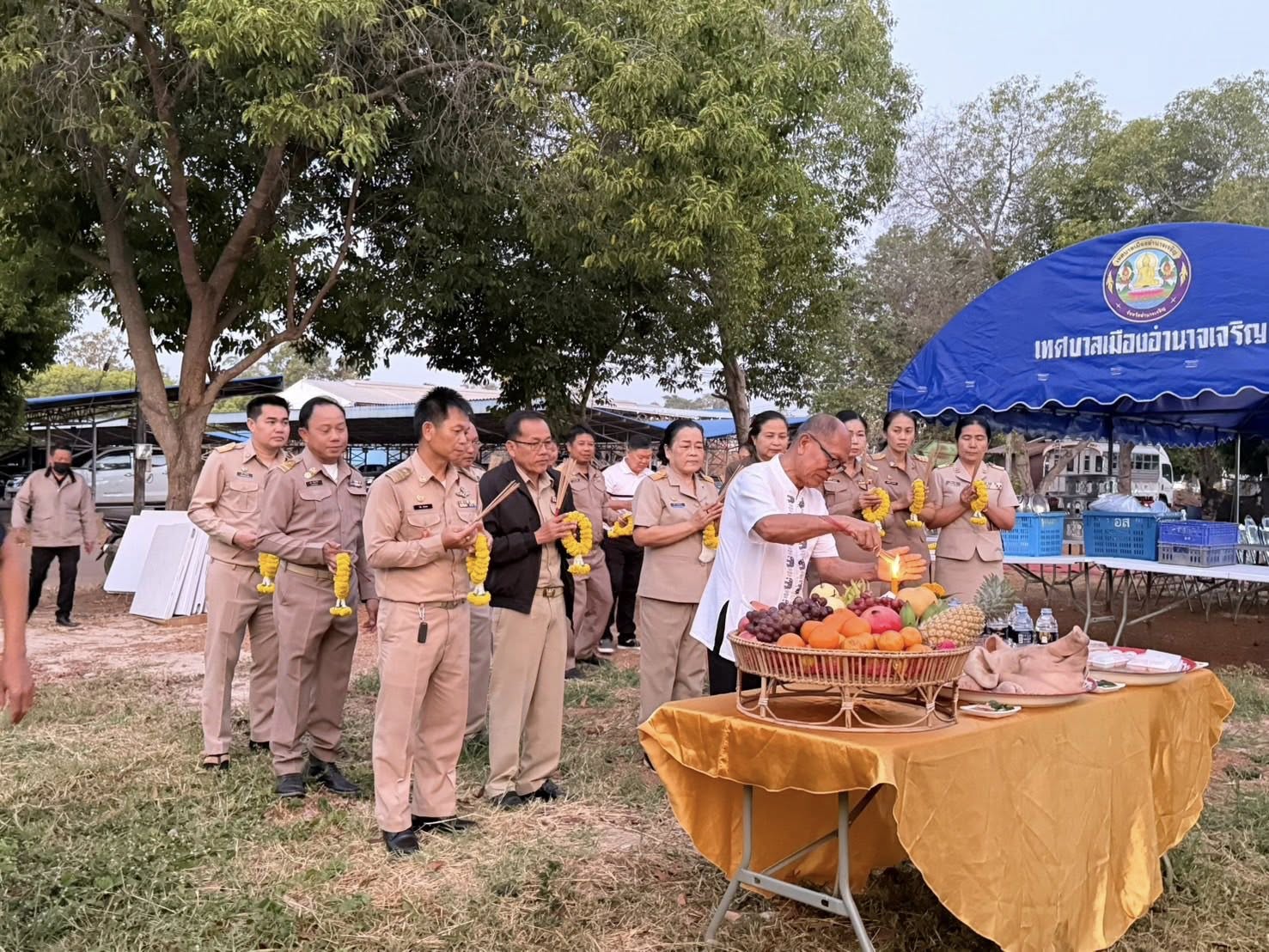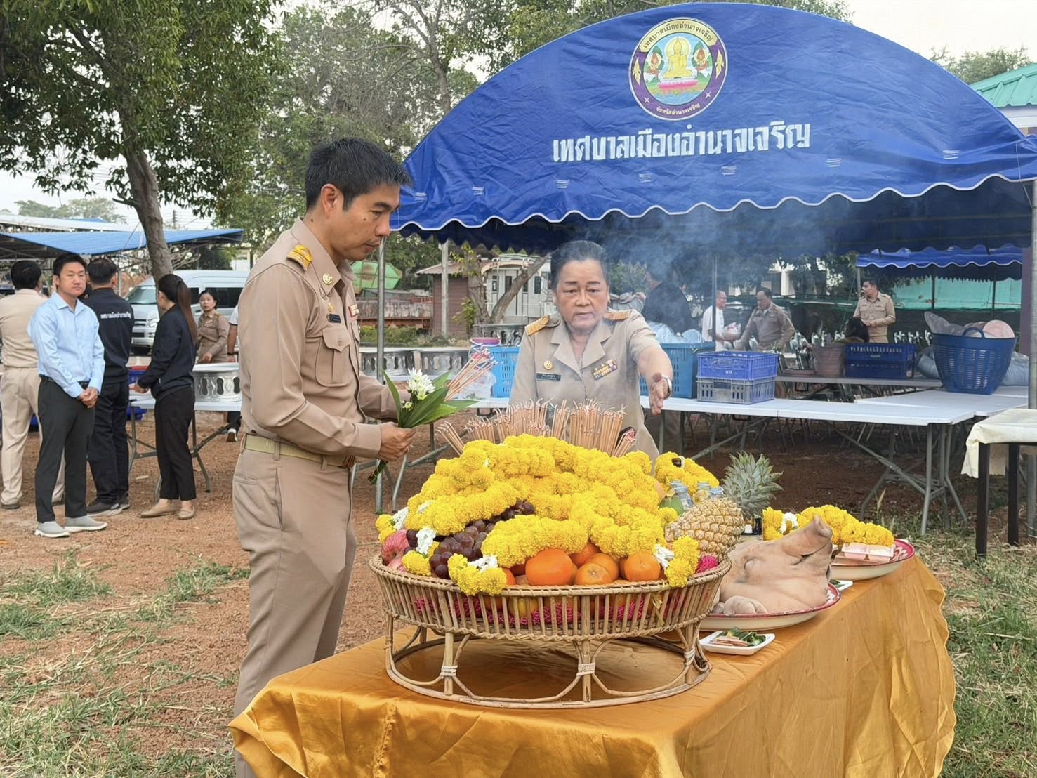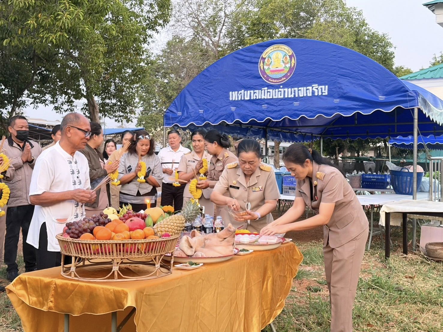 นายถวัลย์ นิยมพานิชพัฒนา นายกเทศมนตรีเมืองอำนาจเจริญ พร้อมด้วย คณะผู้บริหารเทศบาลเมืองอำนาจเจริญ สมาชิกสภาเทศบาลเมืองอำนาจเจริญ หัวหน้าส่วนราชการ ข้าราชการ และบุคลากรในสังกัดเทศบาลเมืองอำนาจเจริญ ร่วมพิธีทำบุญตักบาตรอาคารศูนย์พัฒนาคุณภาพชีวิตและส่งเสริมอาชีพผู้สูงอายุและคนพิการ (อาคารใหม่) เพื่อความเป็นสิริมงคล ทั้งต่อสถานที่ปฏิบัติงานของทางราชการและบุคลากรที่ปฏิบัติหน้าที่ทุกคน และรักษาไว้ซึ่งขนบธรรมเนียมประเพณีอันดีงามทางพระพุทธศาสนา ณ อาคารศูนย์พัฒนาคุณภาพชีวิตและส่งเสริมอาชีพผู้สูงอายุและคนพิการ (อาคารใหม่) สำนักงานเทศบาลเมืองอำนาจเจริญ