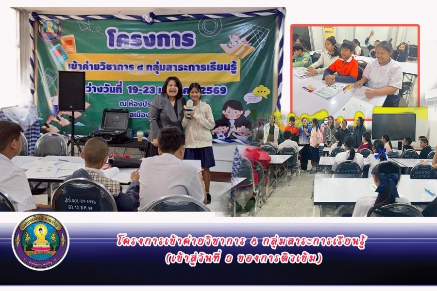 เทศบาลเมืองอำนาจเจริญ โดย นายถวัลย์ นิยมพานิชพัฒนา นายกเทศมนตรีเมืองอำนาจเจริญ ดำเนินโครงการเข้าค่ายวิชาการ 8 กลุ่มสาระการเรียนรู้ (เข้าสู่วันที่ 3 ของการติวเข้ม) จัดขึ้นในระหว่างวันที่ 19 – 23 มกราคม พ.ศ. 2569 ซึ่งมีกลุ่มเป้าหมายตามโครงการฯ คือ นักเรียนในสังกัดเทศบาลเมืองอำนาจเจริญ ระดับประถมศึกษาปีที่ 6 ทั้งนี้ มุ่งหวังการพัฒนาและยกระดับคุณภาพการศึกษา เพื่อให้ผู้เรียนได้รับการส่งเสริมให้มีศักยภาพสูงสุดและยกระดับผลสัมฤทธิ์ทางการเรียนของนักเรียนทั้ง 8 กลุ่มสาระการเรียนรู้ให้สูงขึ้น ณ ห้องประชุมชั้น 1 สำนักงานเทศบาลเมืองอำนาจเจริญ