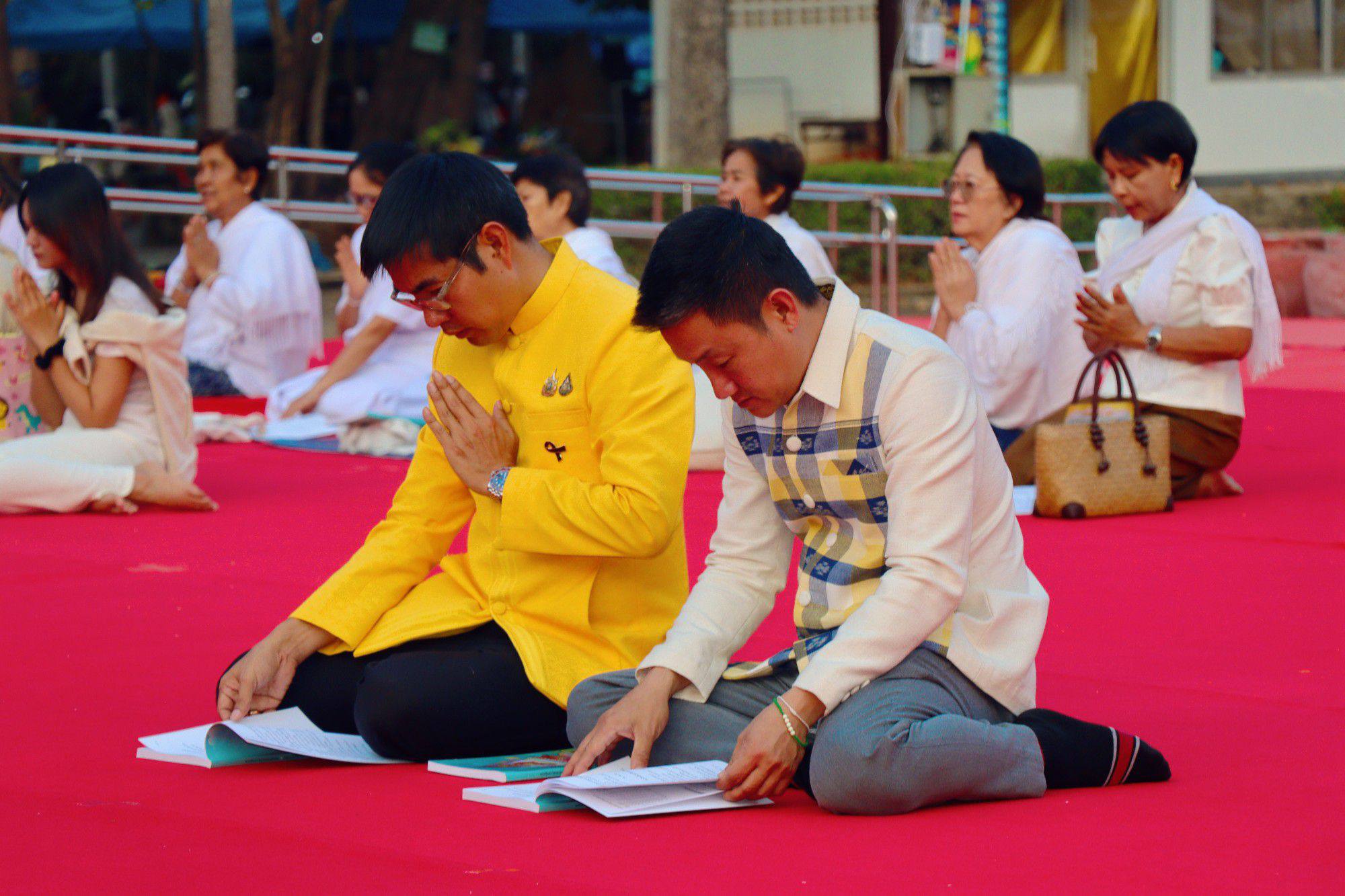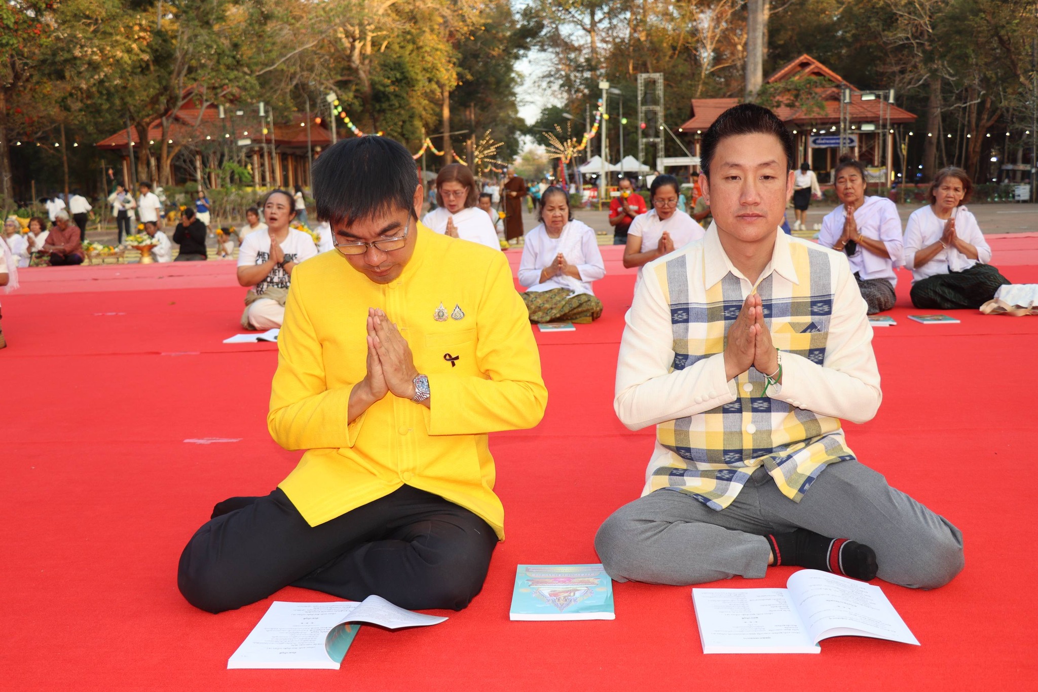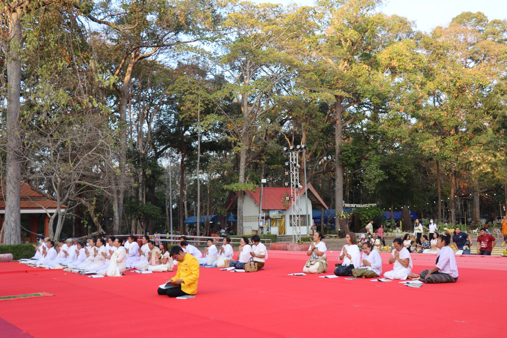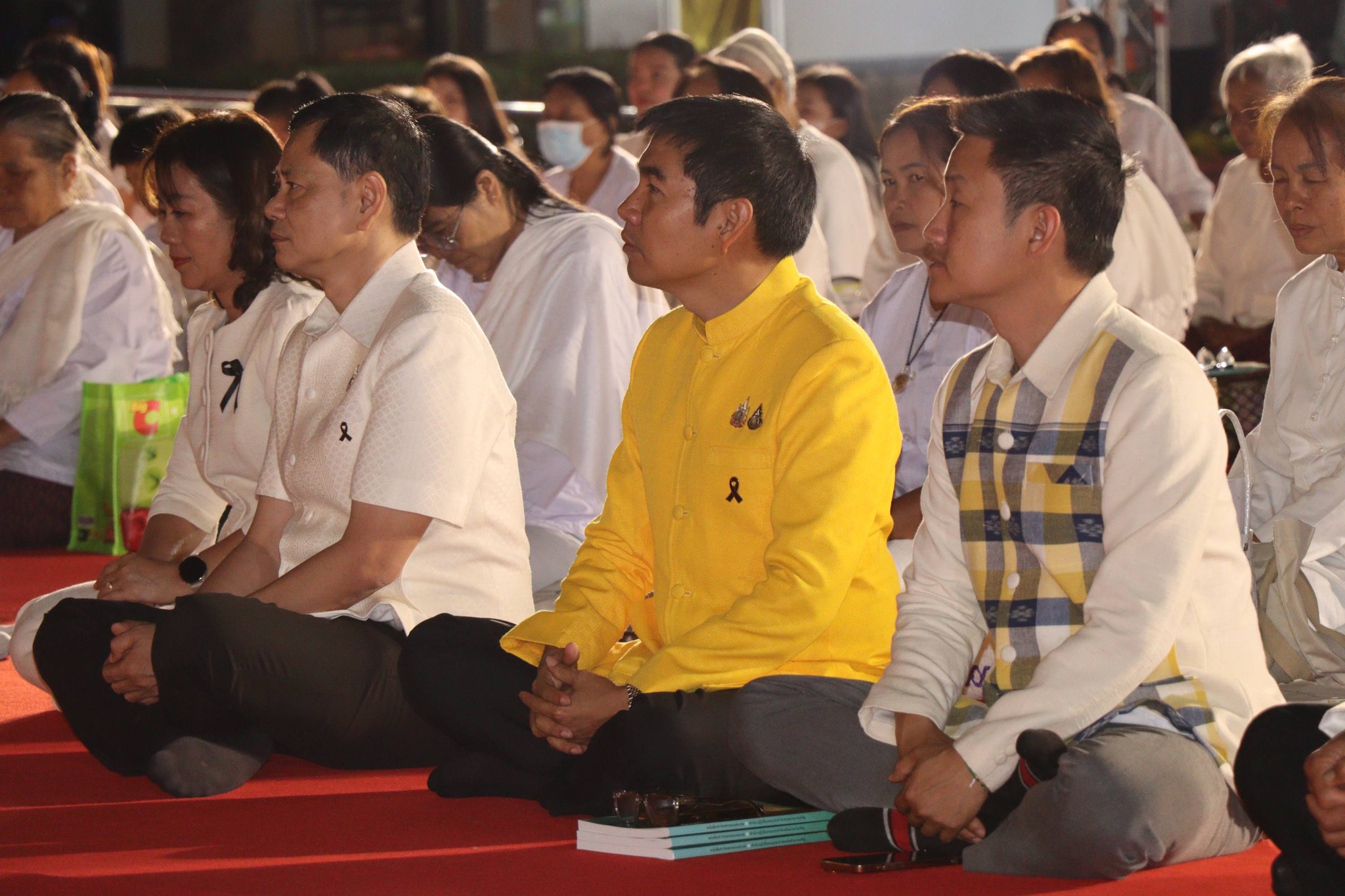 พิธีทำวัตรสวดมนต์เย็นและรับฟังพระธรรมเทศนาจาก พระครูภาวนากิจจาทร เจ้าอาวาสวัดเก่าบ่อ อำเภอหัวตะพาน จังหวัดอำนาจเจริญ