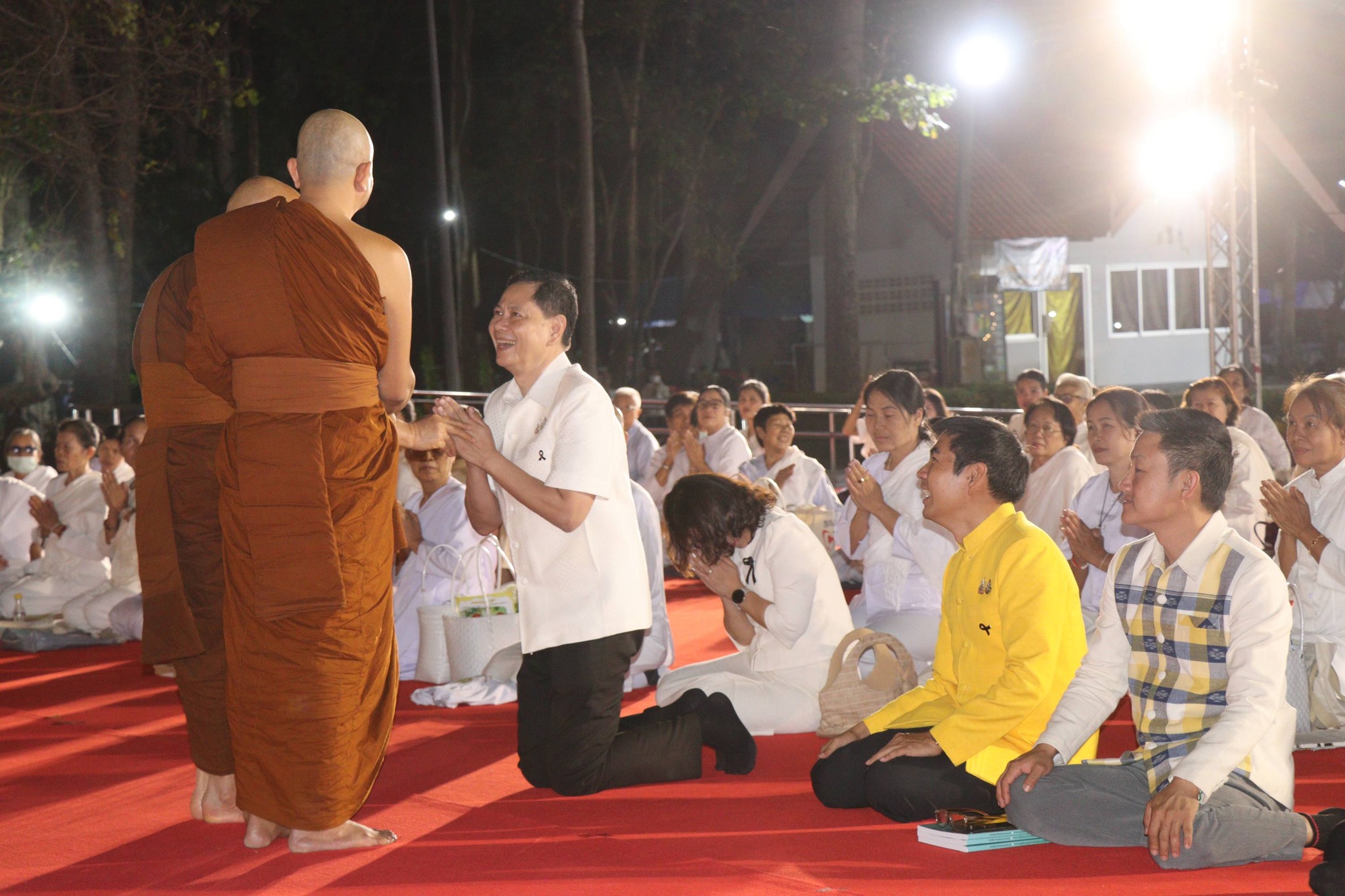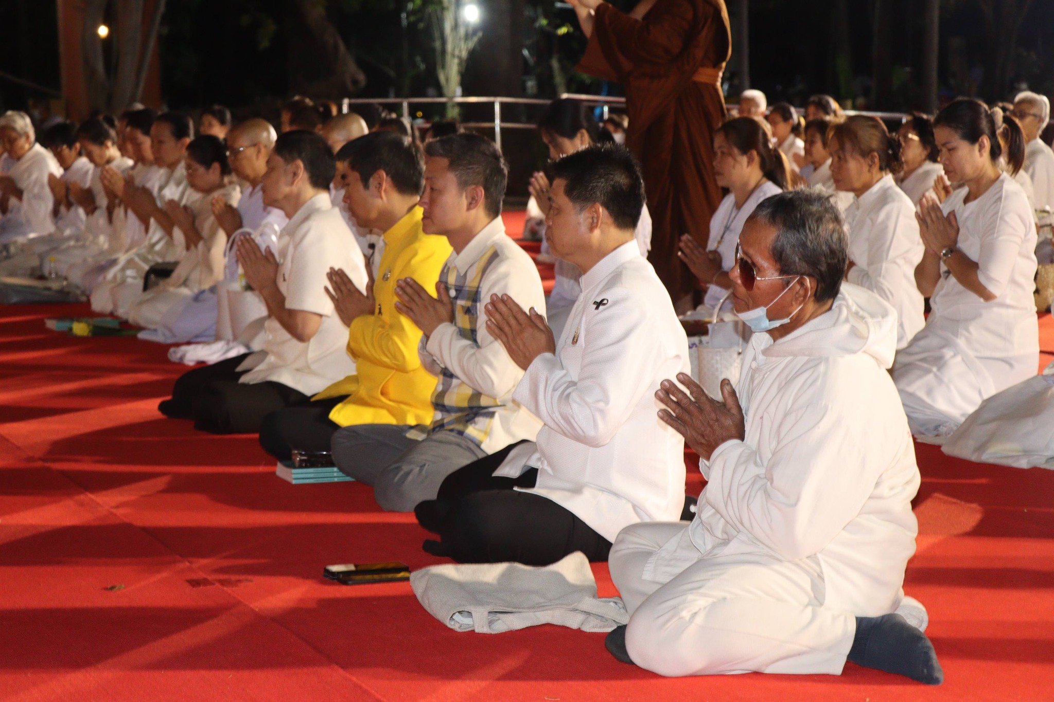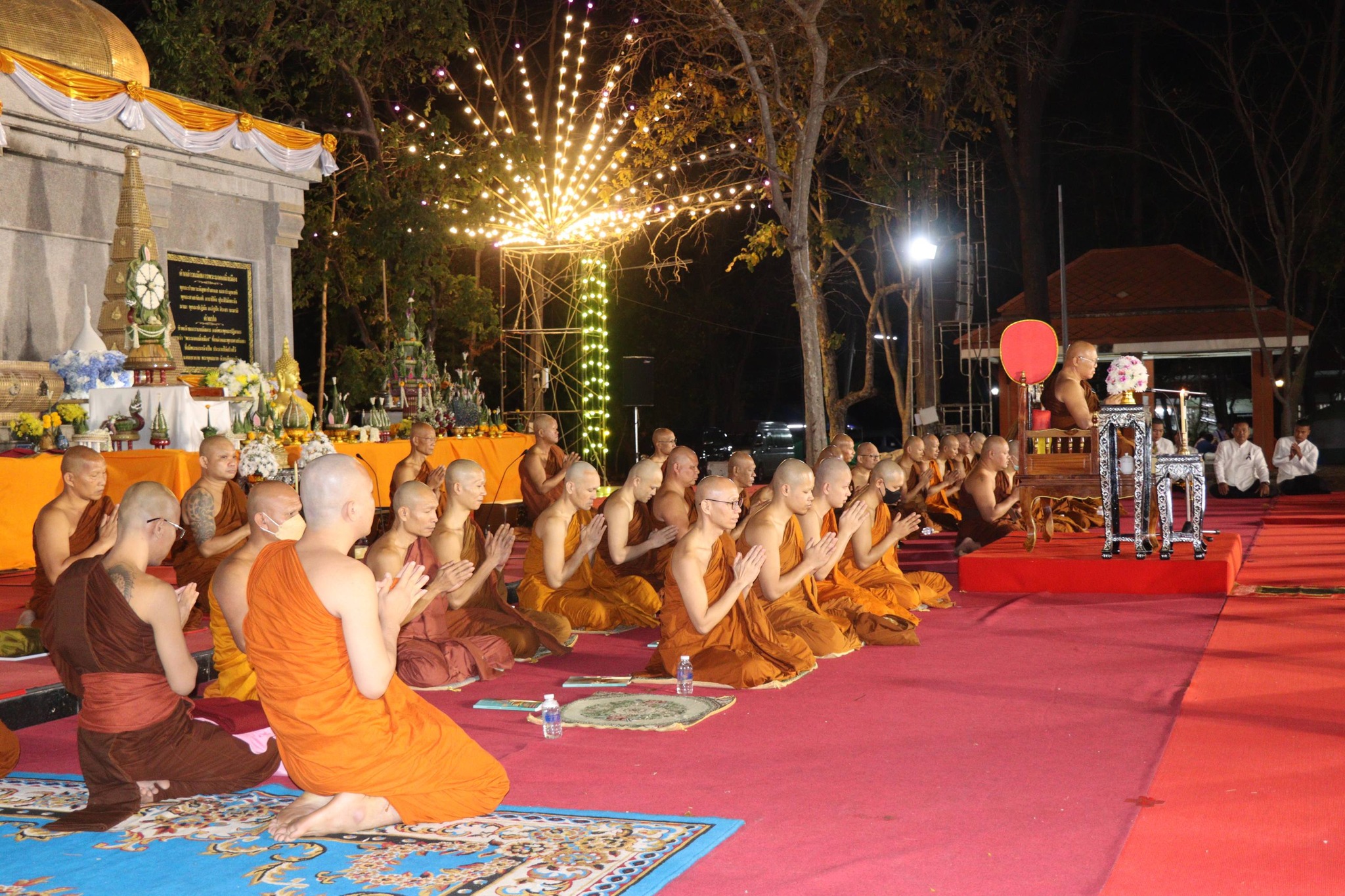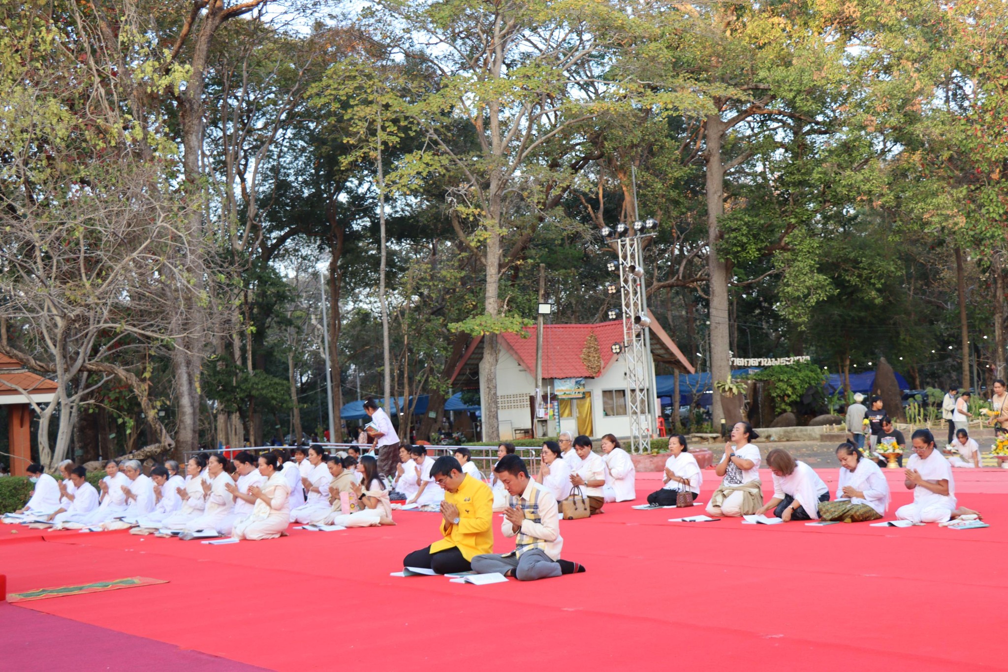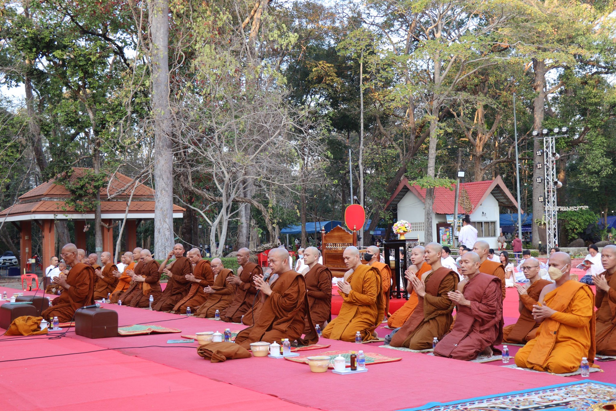 พิธีทำวัตรสวดมนต์เย็นและรับฟังพระธรรมเทศนาจาก พระครูภาวนากิจจาทร เจ้าอาวาสวัดเก่าบ่อ อำเภอหัวตะพาน จังหวัดอำนาจเจริญ