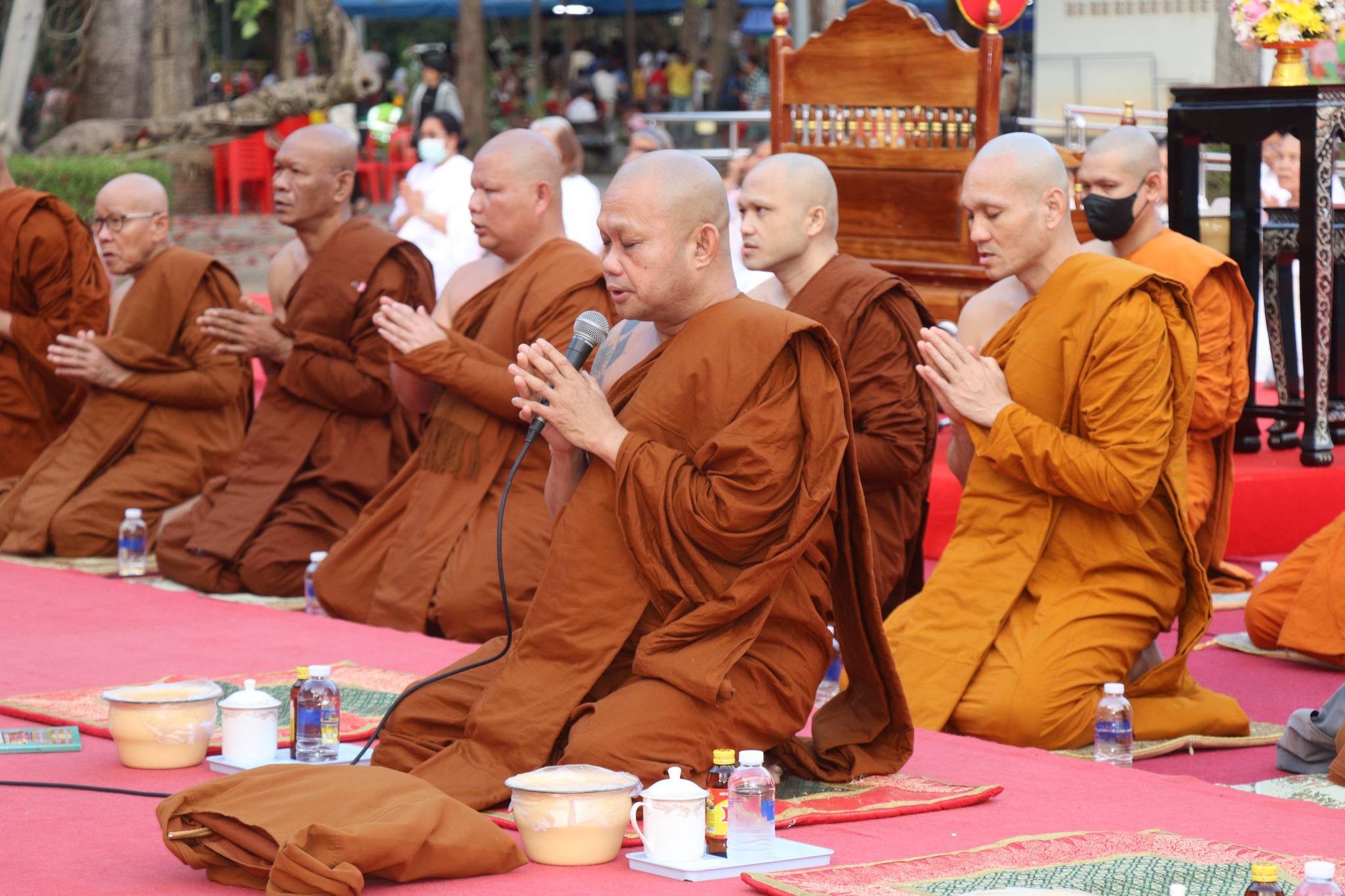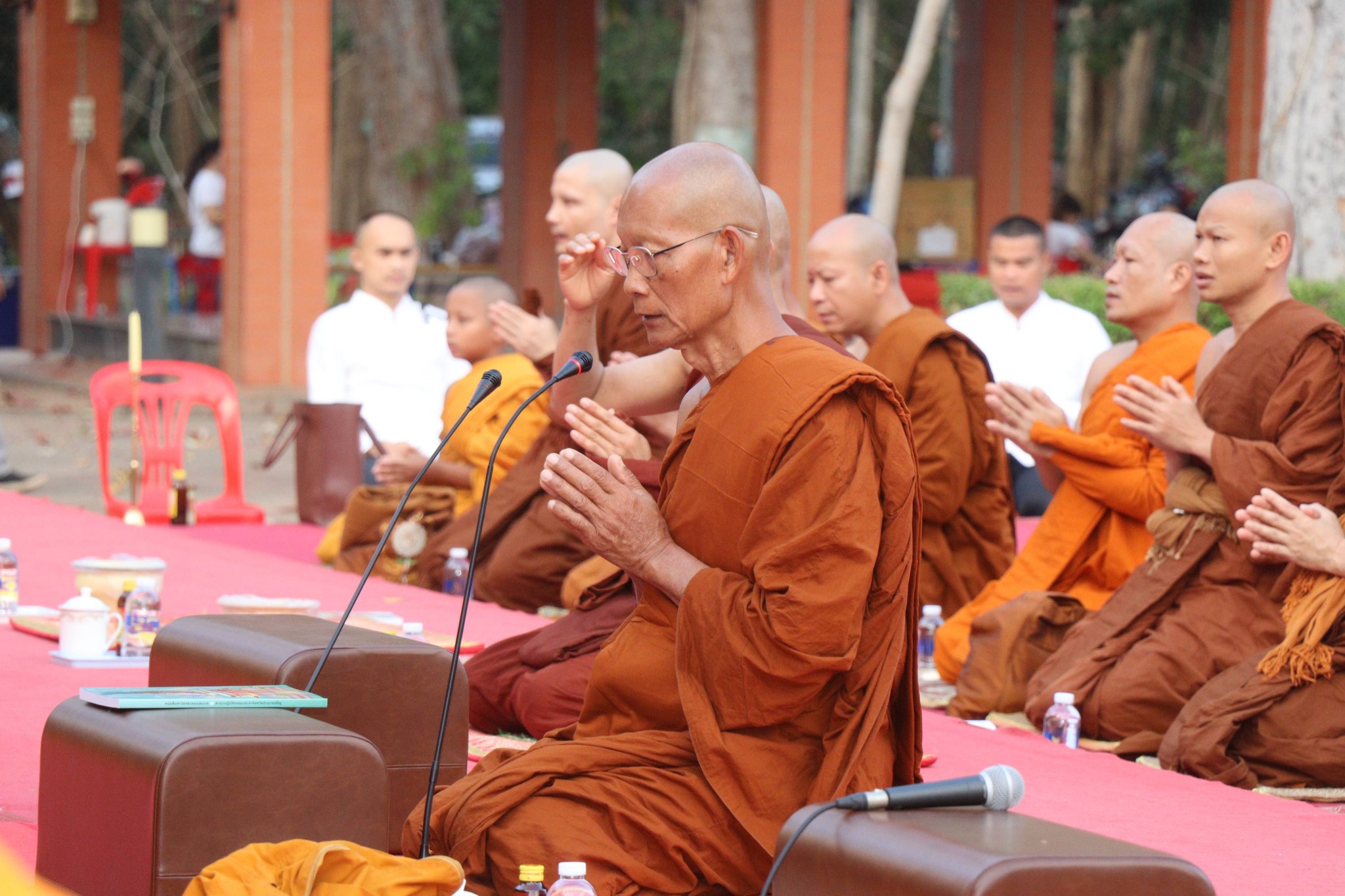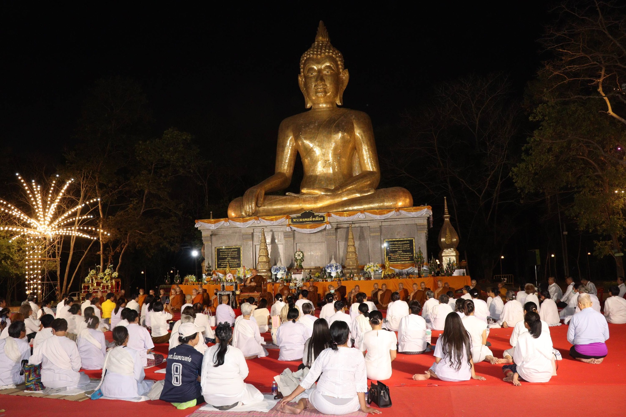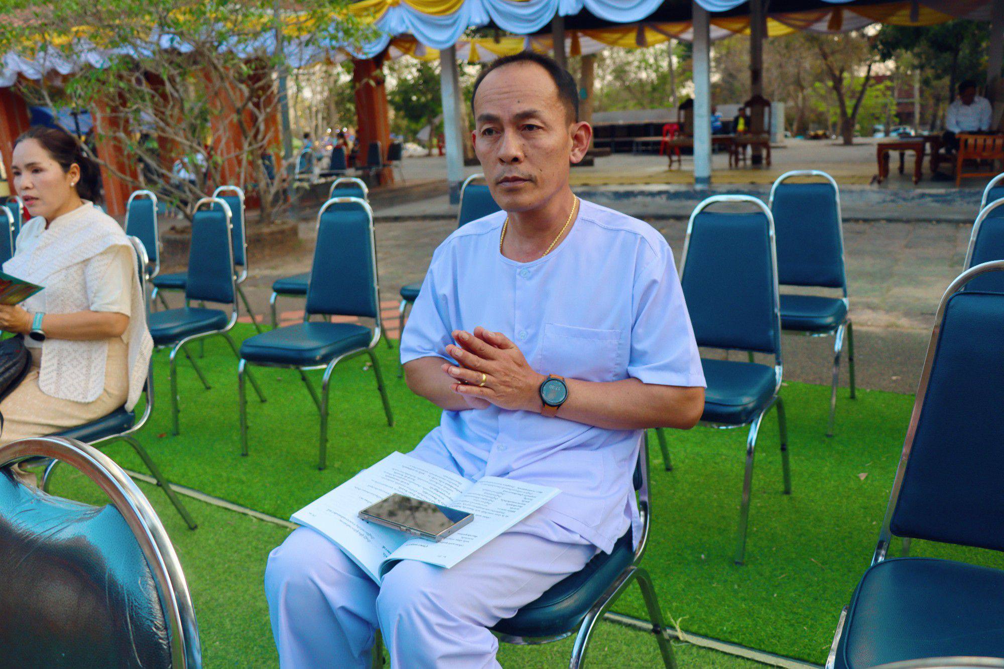 พิธีทำวัตรสวดมนต์เย็นและรับฟังพระธรรมเทศนาจาก พระครูภาวนากิจจาทร เจ้าอาวาสวัดเก่าบ่อ อำเภอหัวตะพาน จังหวัดอำนาจเจริญ