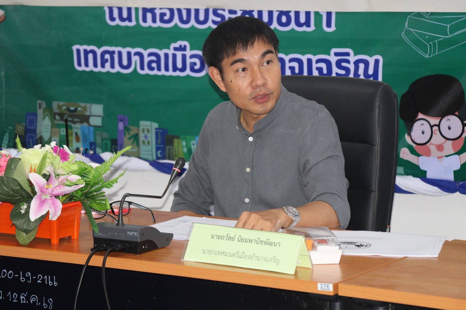 นายถวัลย์ นิยมพานิชพัฒนา นายกเทศมนตรีเมืองอำนาจเจริญ เป็นประธานในการประชุมการดำเนินงานเงินอุดหนุนเฉพาะกิจ เงินอุดหนุนโครงการก่อสร้างตลาดสดเทศบาล ๑ เทศบาลเมืองอำนาจเจริญ อำเภอเมืองอำนาจเจริญ จังหวัดอำนาจเจริญ ในที่ประชุมประกอบไปด้วย คณะผู้บริหารเทศบาลเมืองอำนาจเจริญ หัวหน้าส่วนราชการ พนักงานเทศบาล เจ้าหน้าที่ผู้เกี่ยวข้อง รวมไปถึงตัวแทนคณะกรรมการและตัวแทนผู้ประกอบการ ตลาดสดเทศบาล ๑ ทั้งนี้ เพื่อติดตามการดำเนินงานตามโครงการฯ ในส่วนต่างๆ อาทิเช่น ผลการสำรวจความคิดเห็นของประชาชน , ผลการสำรวจจำนวนแท่นขายของ และติดตามผลการจัดทำแบบแปลนตลาด เป็นต้น
