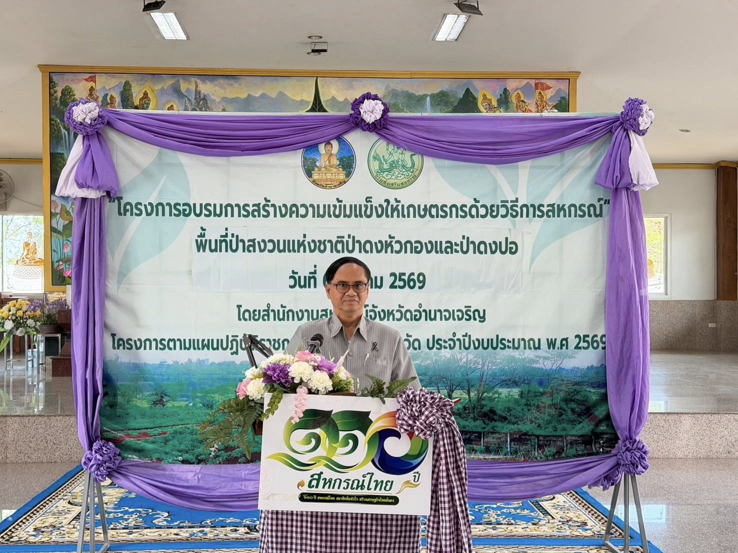 นายถวัลย์ นิยมพานิชพัฒนา นายกเทศมนตรีเมืองอำนาจเจริญ มอบหมายให้ นายณัฐพล พิระตระกูล รองนายกเทศมนตรีเมืองอำนาจเจริญ เข้าร่วมเป็นเกียรติในพิธีเปิดโครงการอบรมการสร้างความเข้มแข็งให้เกษตรกรด้วยวิธีการสหกรณ์ พื้นที่ป่าสงวนแห่งชาติป่าดงหัวกองและป่าดงปอ โดยมี นายพนัส พันธุ์วรรณ นายกองค์การบริหารส่วนจังหวัดอำนาจเจริญ เป็นประธานในพิธีเปิดโครงการฯ ทั้งนี้ เป็นโครงการตามแผนปฏิบัติราชการของจังหวัด ประจำปีงบประมาณ พ.ศ. ๒๕๖๙ ณ วัดแสนสวัสดิ์ทัศนาราม ตำบลบุ่ง อำเภอเมืองอำนาจเจริญ จังหวัดอํานาจเจริญ