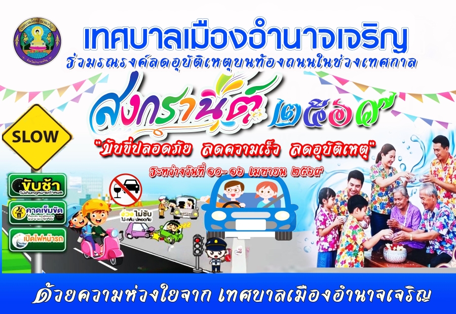เทศบาลเมืองอำนาจเจริญ ร่วมรณรงค์ลดอุบัติเหตุบนท้องถนนในช่วงเทศกาล สงกรานต์ ประจำปี 2569 วันศุกร์, 10 เมษายน 2569 14:40 Print Email back to top