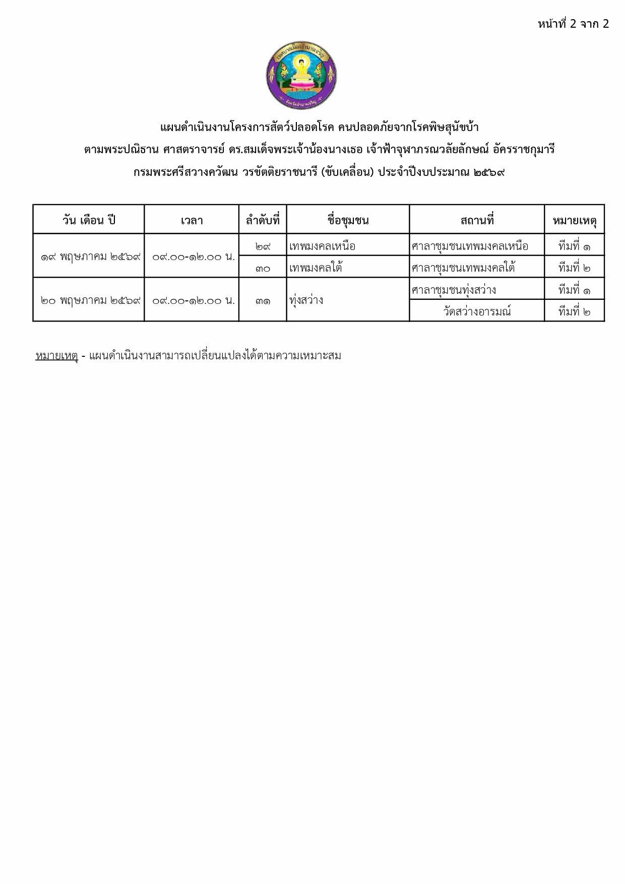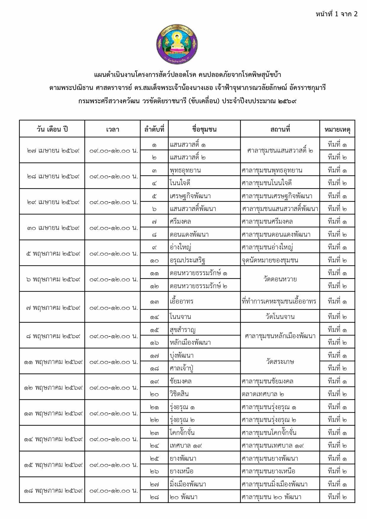 แจ้งประชาสัมพันธ์แผนการรณรงค์ฉีดวัคซีนป้องกันโรคพิษสุนัขบ้า ประจำปี 2569